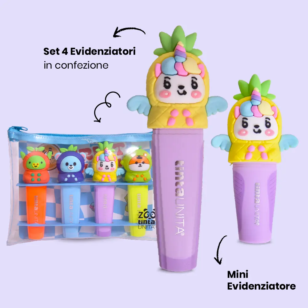 Fruttini che strizzano l’occhio, penne gel che scorrono smooth, evidenziatori pop e accessori che urlano slay!Fruit Friends collection by tintaUNITA Zoo = troppo cute per concentrarsi